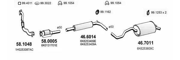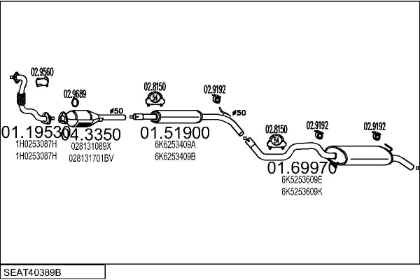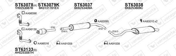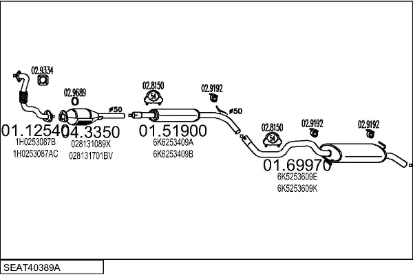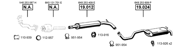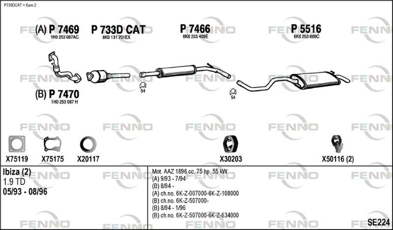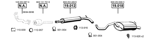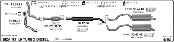 SEAT IBIZA II (6K1) 1.9 TD - Výfukový systém - kompletní od 3/1993 do 8/1996, 1896 ccm, 55 kW, 75 hp, AAZ, Šikmá zadní část