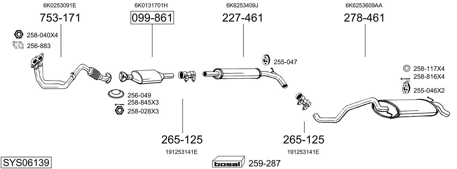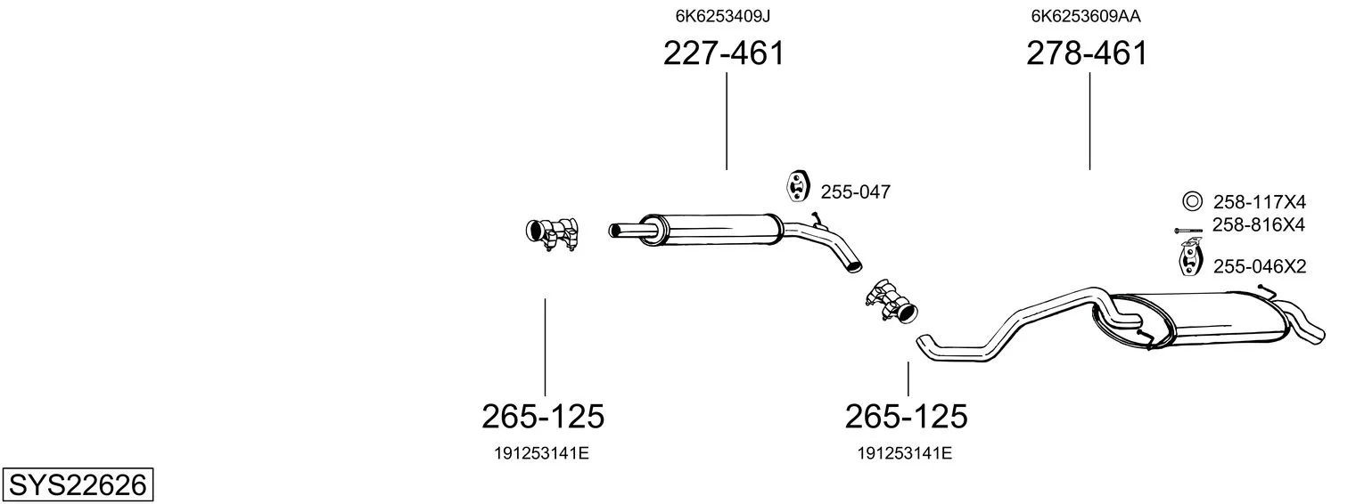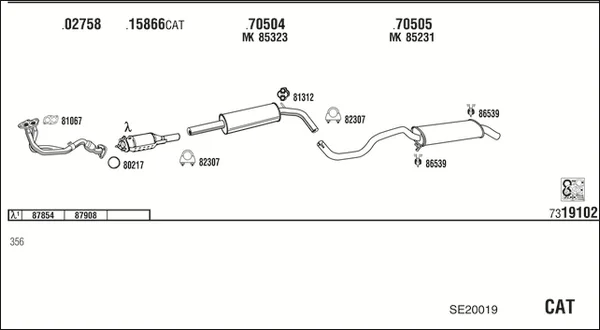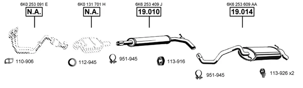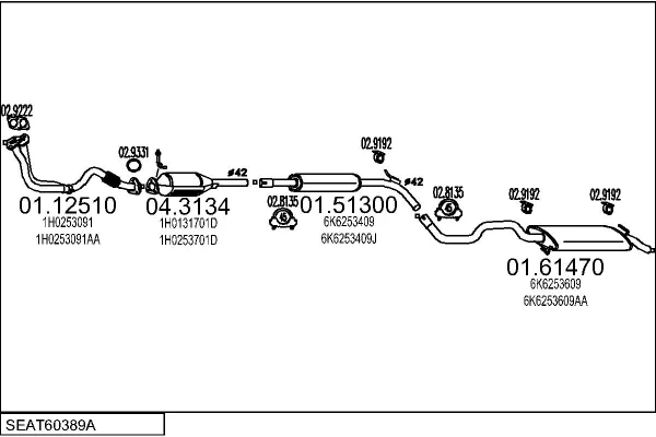 SEAT IBIZA II (6K1) 1.3 i - Výfukový systém - kompletní od 3/1993 do 8/1999, 1272 ccm, 40 kW, 54 hp, 2G, AAV, Šikmá zadní část