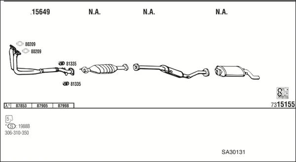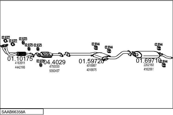 SAAB 9000 Šikmá zadní část 2.0 -16 CS - Výfukový systém - kompletní od 1/1989 do 12/1998, 1985 ccm, 94 kW, 128 hp, B202I, B202XI, Šikmá zadní část