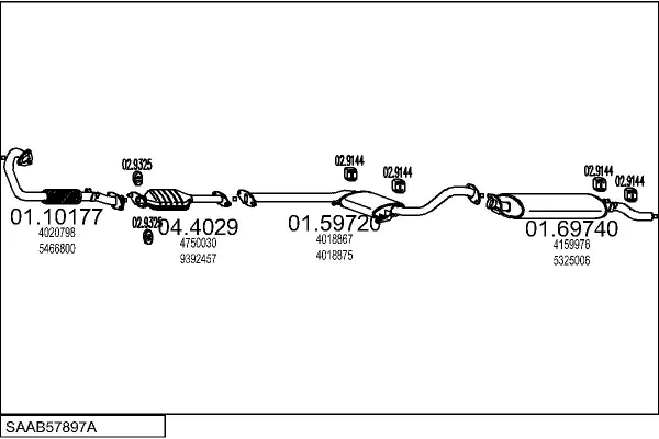 SAAB 9000 Šikmá zadní část 2.0 -16 Turbo CS - Výfukový systém - kompletní od 9/1988 do 12/1998, 1985 ccm, 136 kW, 185 hp, B202L, Šikmá zadní část