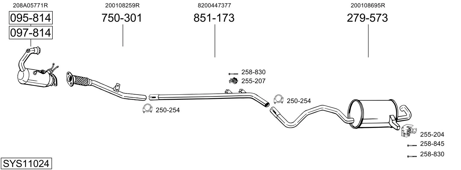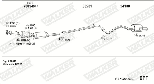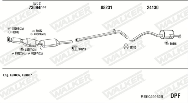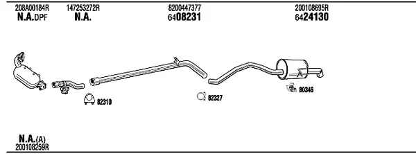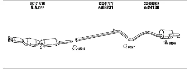 RENAULT MEGANE III kupé (DZ0/1_) 1.5 dCi (DZ09, DZ0D, DZ1F, DZ1G, DZ14, DZ29) - Výfukový systém - kompletní od 2/2009 do 8/2015, 1461 ccm, 81 kW, 110 hp, K9K 636, K9K 656, K9K 836, K9K 837, K9K 846, kupé