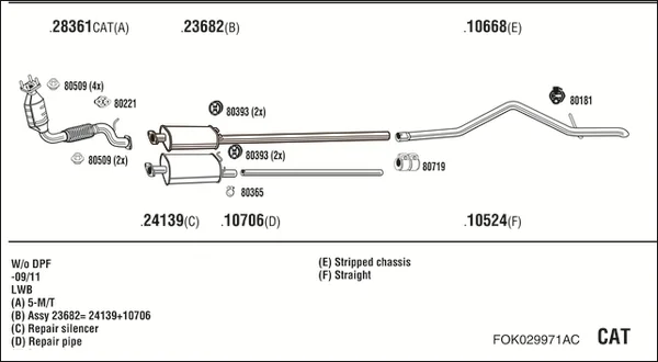 FORD TRANSIT valník/podvozek (FM_ _, FN_ _, FF_ _) 2.2 TDCi - Výfukový systém - kompletní od 10/2007 do 9/2011, 2198 ccm, 103 kW, 140 hp, PGFA, PGFB, UHFA, UHFB, UHFC, valník/podvozek