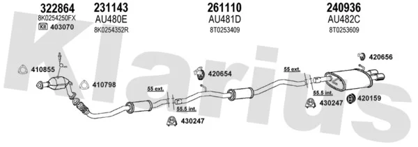 AUDI A5 (8T3) 2.0 TFSI - Výfukový systém - kompletní od 11/2008 do 3/2012, 1984 ccm, 132 kW, 180 hp, CDNB, kupé