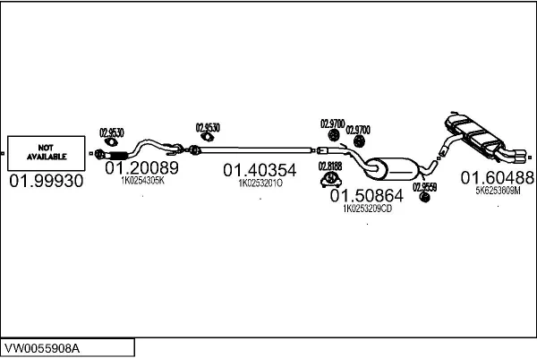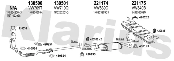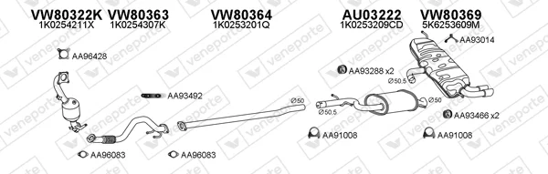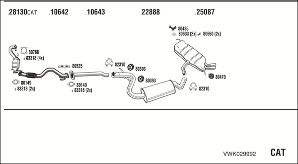 VW GOLF VI (5K1) 1.4 TSI - Výfukový systém - kompletní od 10/2008 do 11/2012, 1390 ccm, 90 kW, 122 hp, CAXA, Šikmá zadní část