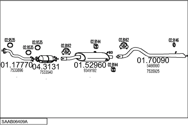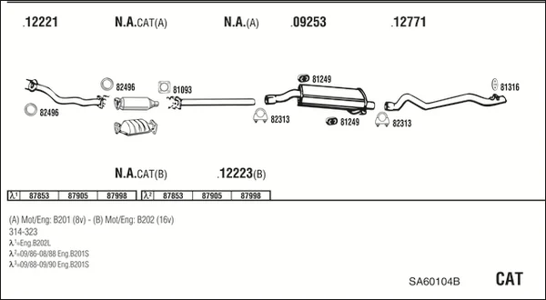 SAAB 900 I Kabriolet 2.0 Turbo-16 - Výfukový systém - kompletní od 11/1986 do 6/1994, 1985 ccm, 118 kW, 160 hp, B202XL, Kabriolet