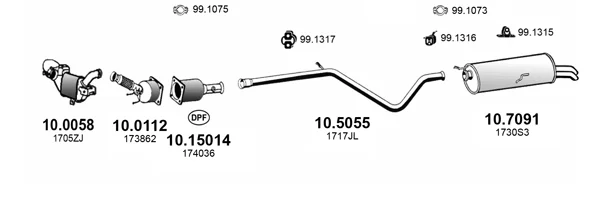 CITROËN C4 I (LC_) 2.0 HDi - Výfukový systém - kompletní od 7/2008 do 7/2011, 1997 ccm, 103 kW, 140 hp, RHF (DW10BTED4), Šikmá zadní část