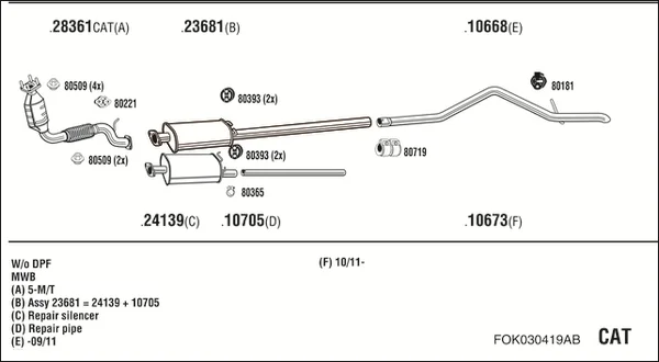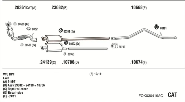 FORD TRANSIT autobus (FD_ _, FB_ _, FS_ _, FZ_ _, FC_ _) 2.2 TDCi - Výfukový systém - kompletní od 10/2008 do 8/2014, 2198 ccm, 85 kW, 115 hp, SRFA, SRFB, SRFC, SRFD, SRFE, autobus