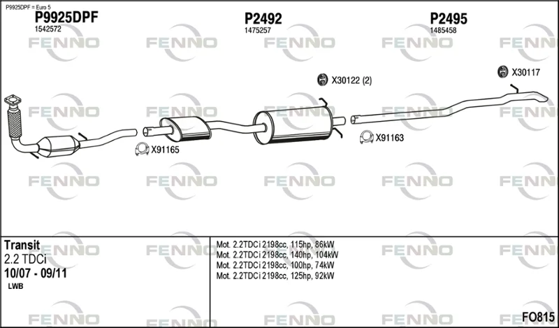 FORD TRANSIT autobus (FD_ _, FB_ _, FS_ _, FZ_ _, FC_ _) 2.2 TDCi - Výfukový systém - kompletní od 10/2008 do 8/2014, 2198 ccm, 85 kW, 115 hp, SRFA, SRFB, SRFC, SRFD, SRFE, autobus