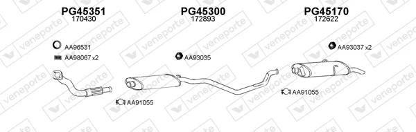 PEUGEOT 405 I (15B) 1.9 - Výfukový systém - kompletní od 1/1989 do 12/1992, 1905 ccm, 90 kW, 122 hp, D6A (XU9J2), limuzína