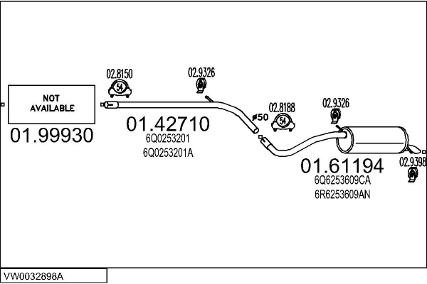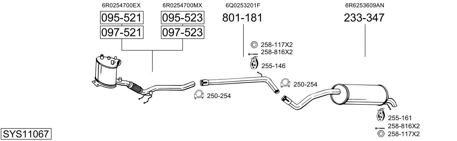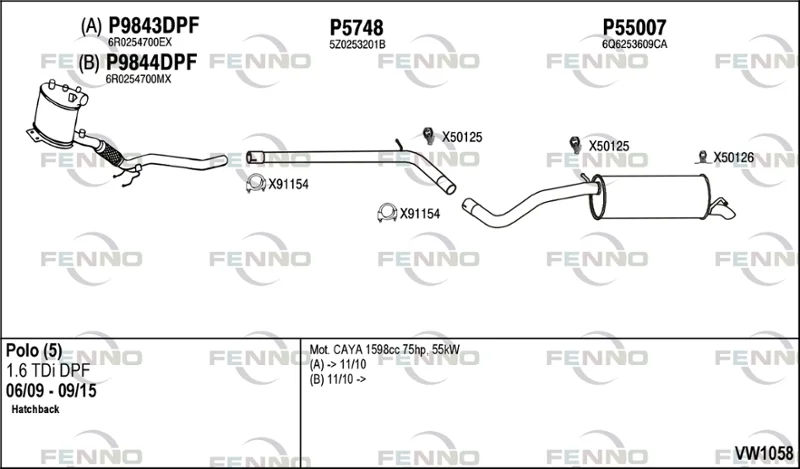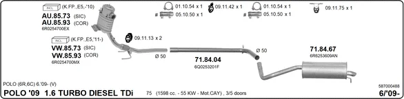 VW POLO V (6R1, 6C1) 1.6 TDI - Výfukový systém - kompletní od 6/2009 do 5/2014, 1598 ccm, 55 kW, 75 hp, CAYA, Šikmá zadní část