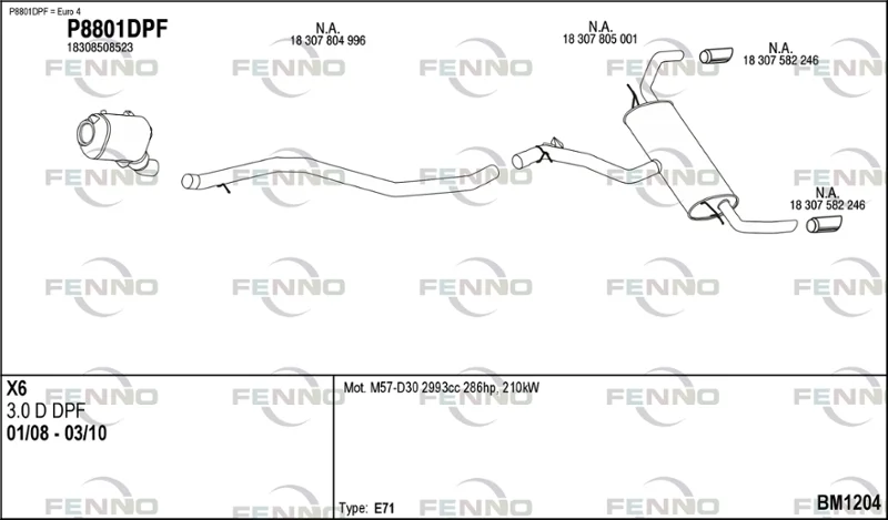 BMW X6 (E71, E72) xDrive 35 d - Výfukový systém - kompletní od 1/2008 do 3/2010, 2993 ccm, 210 kW, 286 hp, M57 D30 (306D5), SUV
