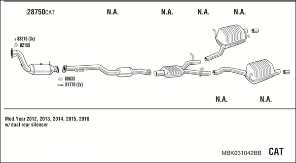 MERCEDES-BENZ E-CLASS (W212) E 250 CGI (212.047, 212.147) - Výfukový systém - kompletní od 1/2009 do 12/2015, 1796 ccm, 150 kW, 204 hp, M 271.860, limuzína