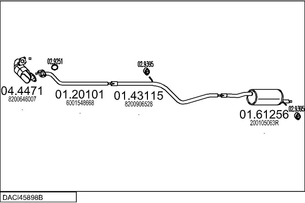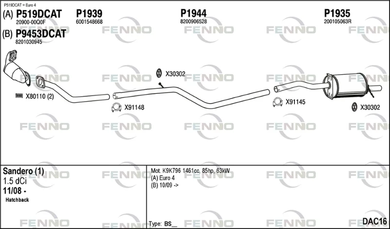 DACIA SANDERO 1.5 dCi - Výfukový systém - kompletní od 11/2008, 1461 ccm, 63 kW, 86 hp, K9K 796, Šikmá zadní část