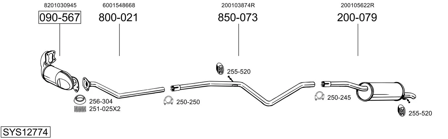 DACIA LOGAN pick-up (US_) 1.5 dCi (US0W) - Výfukový systém - kompletní od 3/2008, 1461 ccm, 63 kW, 86 hp, K9K 796, pick-up