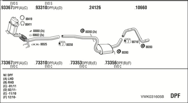 VW GOLF PLUS V (5M1, 521) 1.6 TDI - Výfukový systém - kompletní od 3/2009 do 12/2013, 1598 ccm, 77 kW, 105 hp, CAYC, Šikmá zadní část