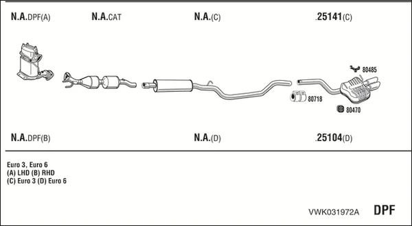 VW PASSAT CC B6 (357) 2.0 BlueTDI - Výfukový systém - kompletní od 5/2009 do 11/2010, 1968 ccm, 105 kW, 143 hp, CBAC, kupé
