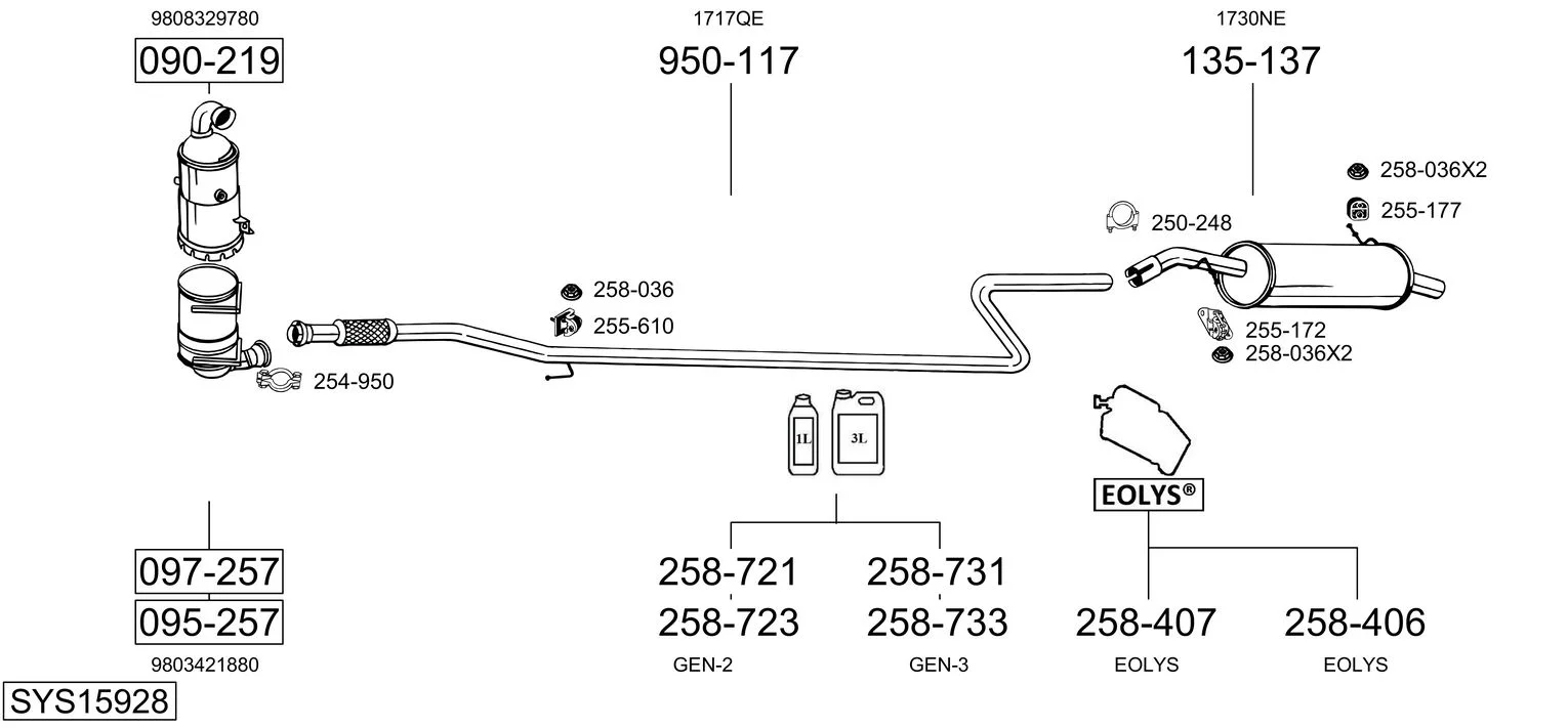 CITROËN C3 II (SC_) 1.6 HDi - Výfukový systém - kompletní od 11/2009 do 9/2016, 1560 ccm, 68 kW, 92 hp, 9HJ (DV6DTEDM), 9HP (DV6DTED), Šikmá zadní část