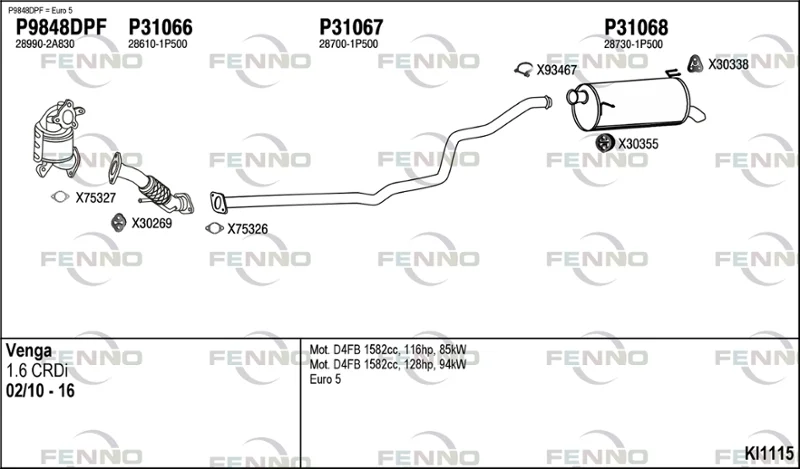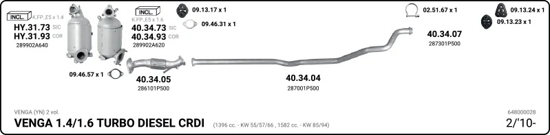 KIA VENGA (YN) 1.6 CRDi 128 - Výfukový systém - kompletní od 2/2010 do 3/2019, 1582 ccm, 94 kW, 128 hp, D4FB, Šikmá zadní část