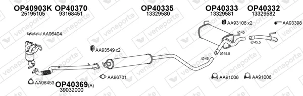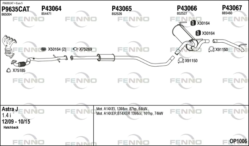 OPEL ASTRA J (P10) 1.4 (68) - Výfukový systém - kompletní od 12/2009 do 10/2015, 1398 ccm, 64 kW, 87 hp, A 14 XEL, Šikmá zadní část