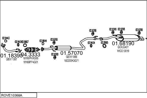 ROVER 200 II Kabriolet (XW) 216 1.6i - Výfukový systém - kompletní od 1/1992 do 11/1999, 1590 ccm, 90 kW, 122 hp, D 16 A8, Kabriolet