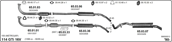 ROVER 100 / METRO Šikmá zadní část (XP) 114 GTI/GT 16V Cat - Výfukový systém - kompletní od 3/1990 do 12/1998, 1396 ccm, 66 kW, 90 hp, 14 K4C, 14 K4D, Šikmá zadní část
