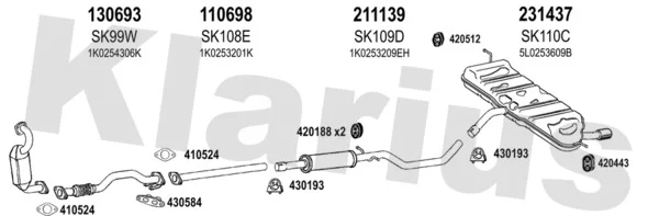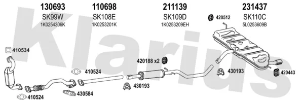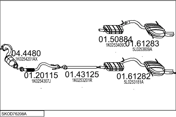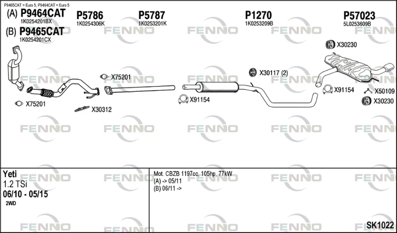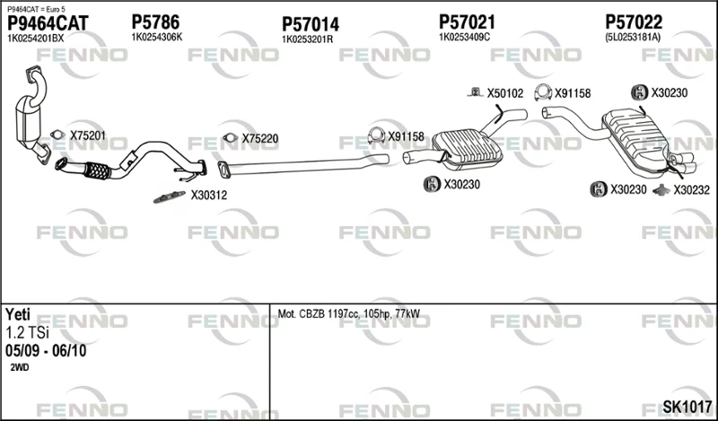 SKODA YETI (5L) 1.2 TSI - Výfukový systém - kompletní od 9/2009 do 5/2015, 1197 ccm, 77 kW, 105 hp, CBZB, SUV