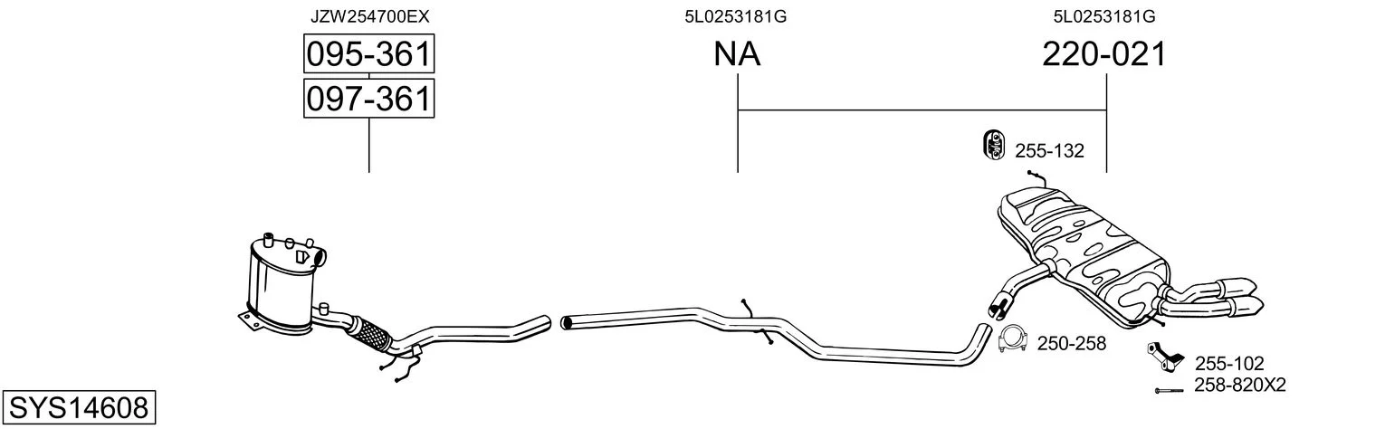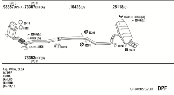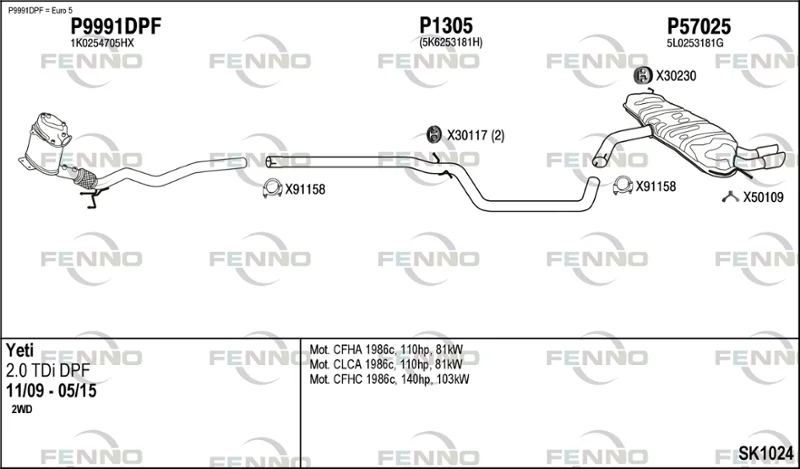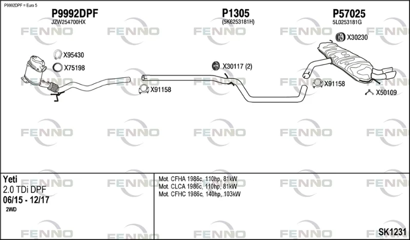 SKODA YETI (5L) 2.0 TDI - Výfukový systém - kompletní od 11/2009 do 12/2017, 1968 ccm, 81 kW, 110 hp, CFHA, CLCA, CUUA, DFSA, SUV