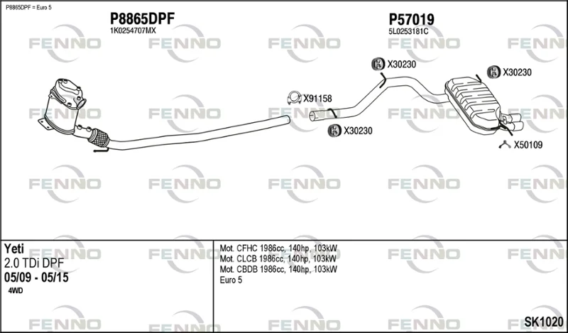 SKODA YETI (5L) 2.0 TDI 4x4 - Výfukový systém - kompletní od 5/2009 do 12/2017, 1968 ccm, 103 kW, 140 hp, CBDB, CFHC, CLCB, SUV