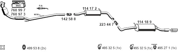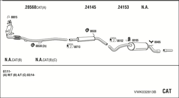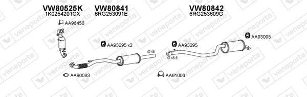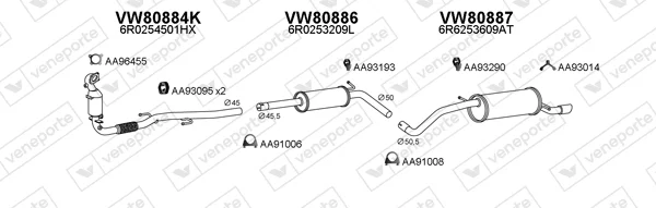 VW POLO V (6R1, 6C1) 1.2 TSI - Výfukový systém - kompletní od 11/2009 do 5/2022, 1197 ccm, 77 kW, 105 hp, CBZB, Šikmá zadní část
