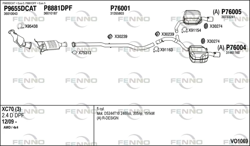 VOLVO XC70 II (136) D5 AWD - Výfukový systém - kompletní od 4/2009 do 12/2011, 2400 ccm, 151 kW, 205 hp, D 5244 T10, kombi