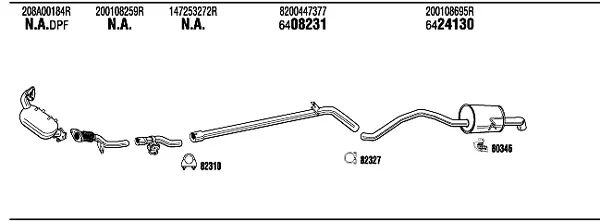 RENAULT MEGANE CC (EZ0/1_) 1.5 dCi (EZ09, EZ1G, EZ0D, EZ14) - Výfukový systém - kompletní od 6/2010 do 8/2015, 1461 ccm, 81 kW, 110 hp, K9K 836, K9K 837, Kabriolet