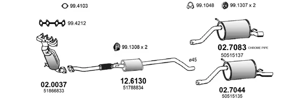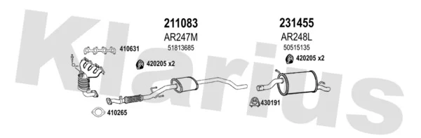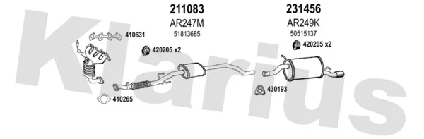 ALFA ROMEO MITO (955_) 1.4 MultiAir (955AXL1B) - Výfukový systém - kompletní od 9/2009 do 8/2013, 1368 ccm, 77 kW, 105 hp, 955 A6.000, Šikmá zadní část