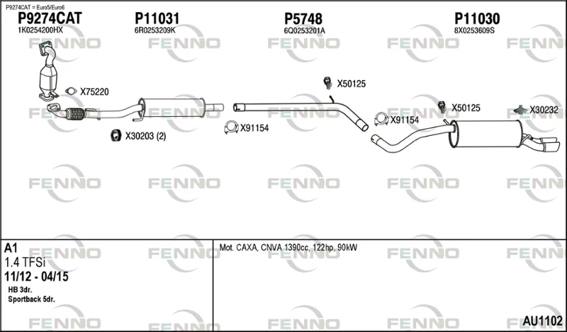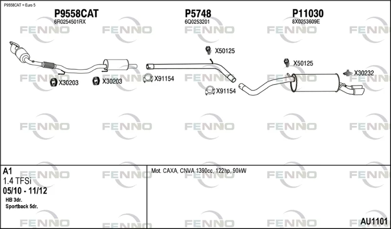 AUDI A1 (8X1, 8XK) 1.4 TFSI - Výfukový systém - kompletní od 5/2010 do 4/2015, 1390 ccm, 90 kW, 122 hp, CAXA, CNVA, Šikmá zadní část