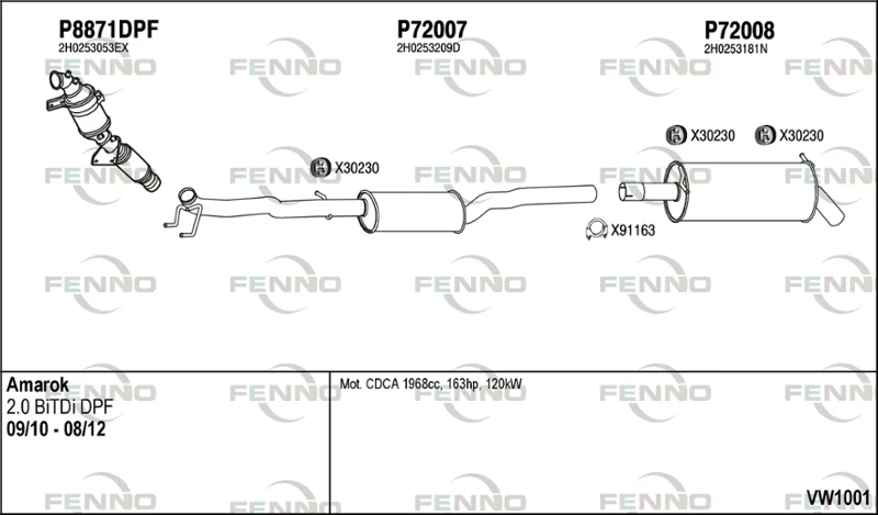 VW AMAROK (2HA, 2HB, S1B, S6B, S7A, S7B) 2.0 BiTDI 4motion - Výfukový systém - kompletní od 9/2010 do 8/2012, 1968 ccm, 120 kW, 163 hp, CDCA, pick-up