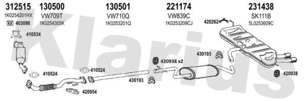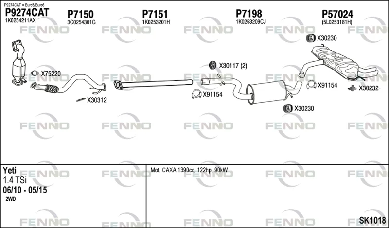 SKODA YETI (5L) 1.4 TSI - Výfukový systém - kompletní od 6/2010 do 5/2015, 1390 ccm, 90 kW, 122 hp, CAXA, SUV