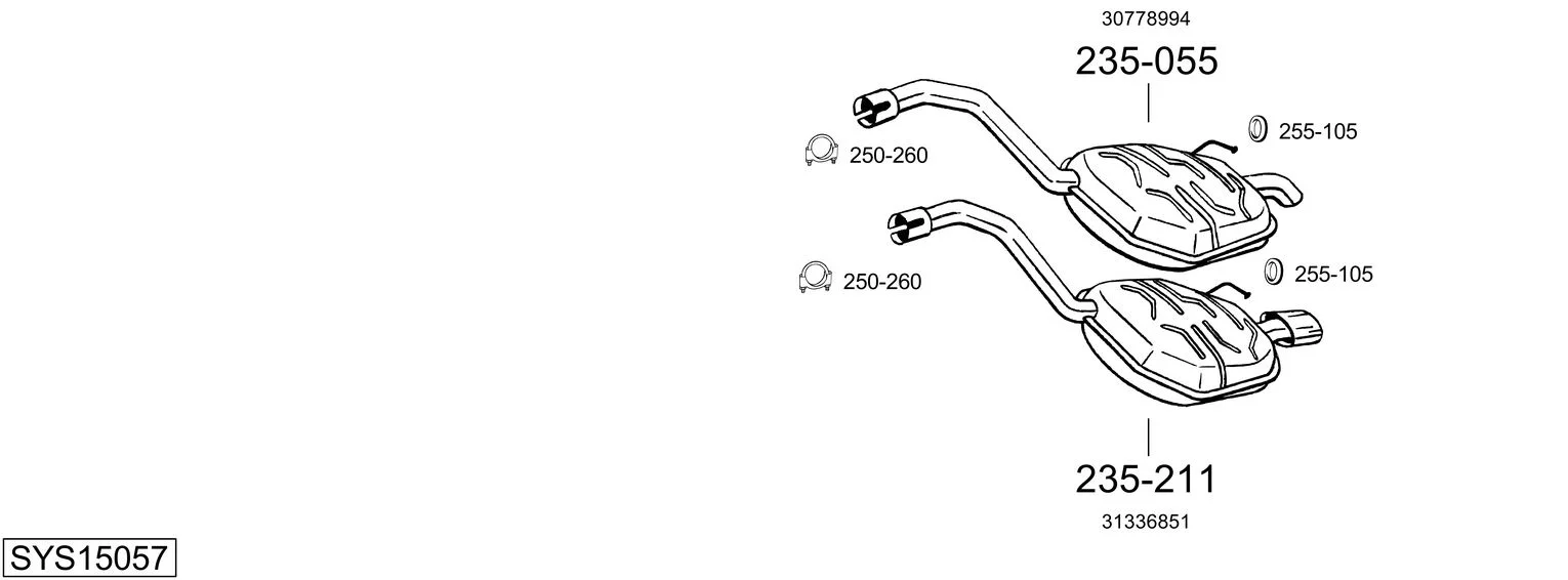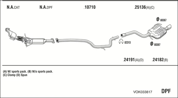 VOLVO XC70 II (136) 2.4 D - Výfukový systém - kompletní od 6/2009 do 12/2010, 2400 ccm, 129 kW, 175 hp, D 5244 T14, kombi