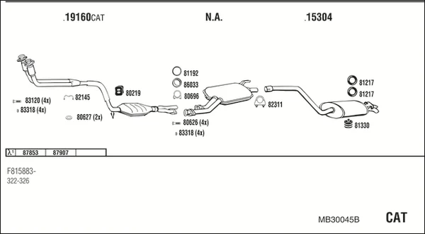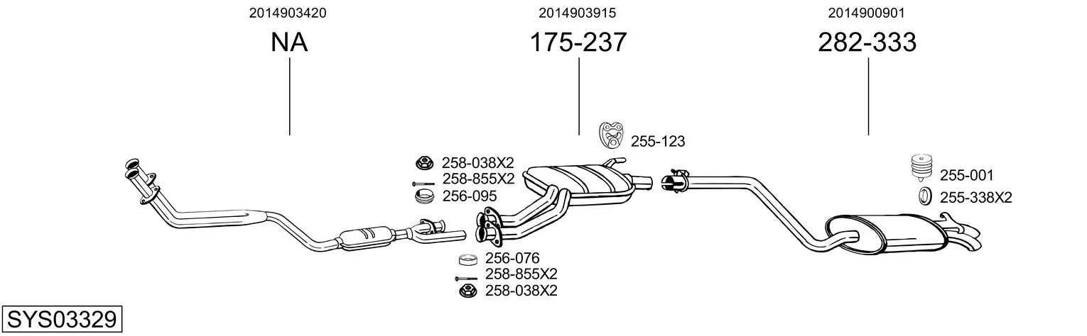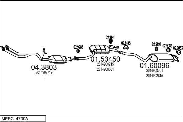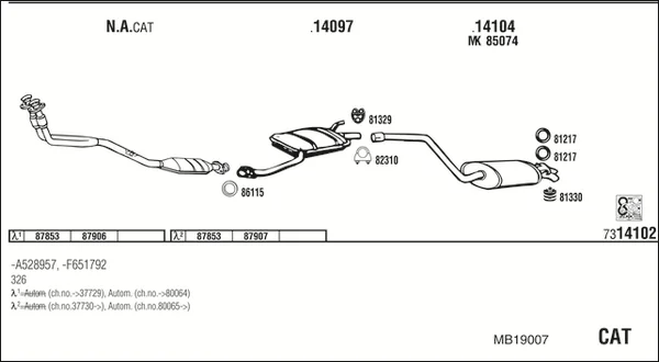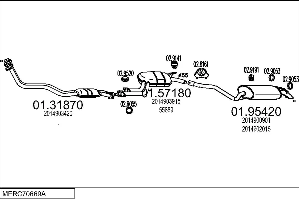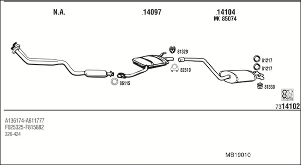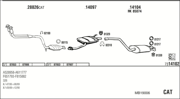 MERCEDES-BENZ 190 (W201) E 2.3 (201.028) - Výfukový systém - kompletní od 10/1986 do 8/1993, 2298 ccm, 100 kW, 136 hp, M 102.985, limuzína