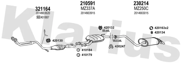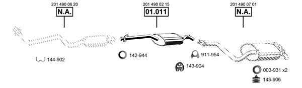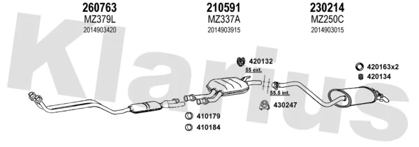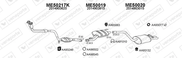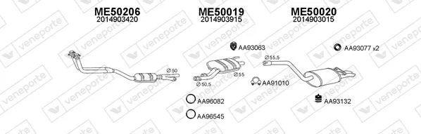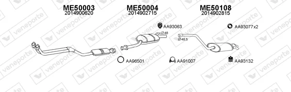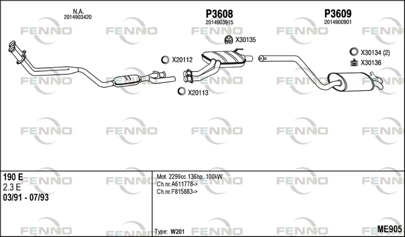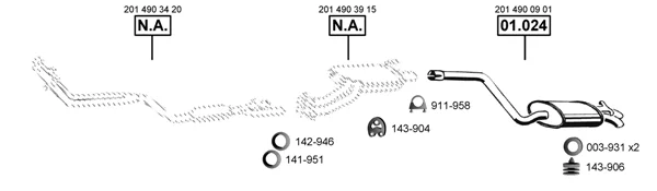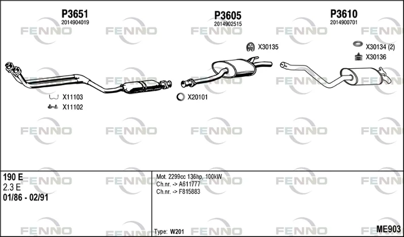 MERCEDES-BENZ 190 (W201) E 2.3 (201.028) - Výfukový systém - kompletní od 10/1986 do 8/1993, 2298 ccm, 100 kW, 136 hp, M 102.985, limuzína