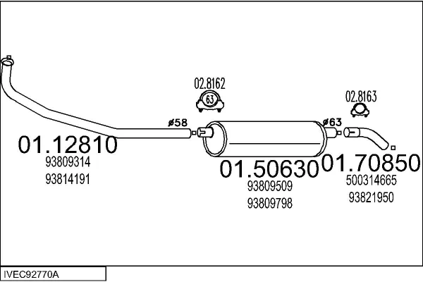 IVECO DAILY II Krabice 35-10 (12974212, 12974217, 13014111, 13014131, 13014204,... - Výfukový systém - kompletní od 1/1989 do 8/1998, 2499 ccm, 76 kW, 103 hp, 8140.97, Krabice