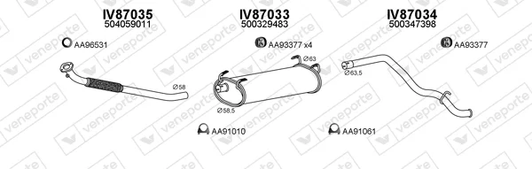 IVECO DAILY III valník/podvozek 50 C 11 - Výfukový systém - kompletní od 5/1999 do 4/2006, 2798 ccm, 78 kW, 106 hp, 8140.43B, 8140.43C, valník/podvozek