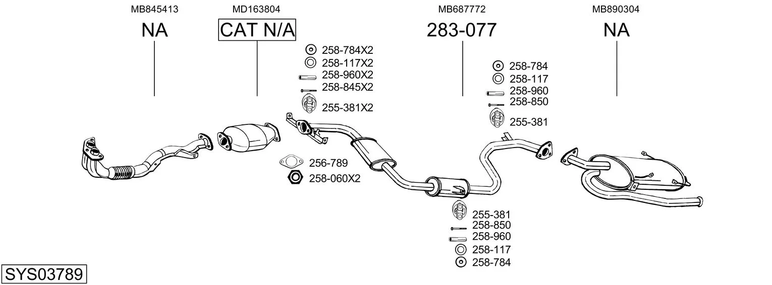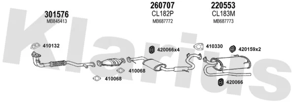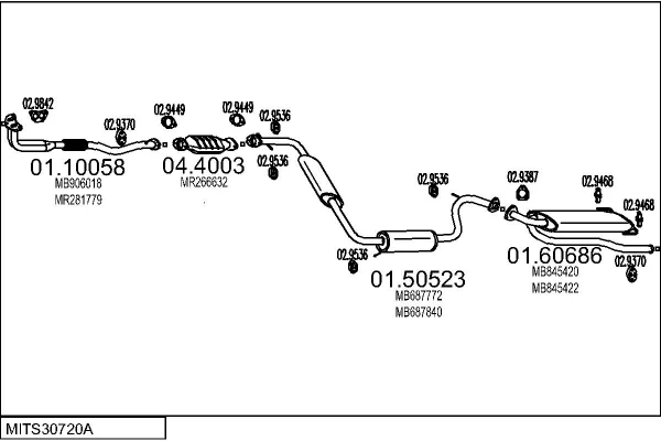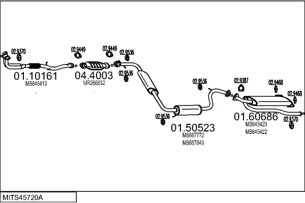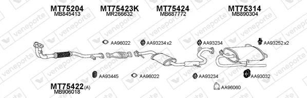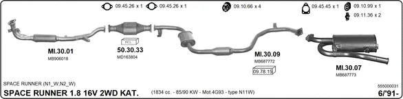 MITSUBISHI SPACE RUNNER velkoprostorová limuzína (N1_W, N2_W) 1.8 (N11W) - Výfukový systém - kompletní od 10/1991 do 8/1999, 1834 ccm, 90 kW, 122 hp, 4G93 (SOHC 16V), velkoprostorová limuzína