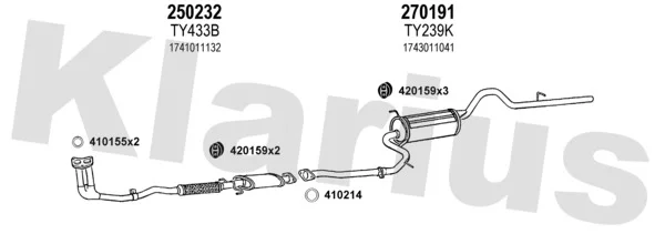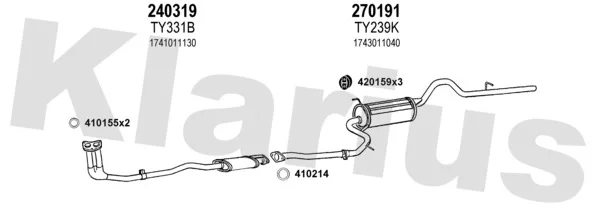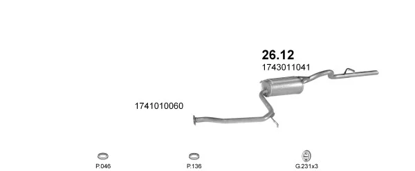 TOYOTA STARLET (_P7_) 1.3 (EP71L, EP71R) - Výfukový systém - kompletní od 10/1984 do 12/1989, 1295 ccm, 55 kW, 75 hp, 2E-L, 2E-LC, Šikmá zadní část