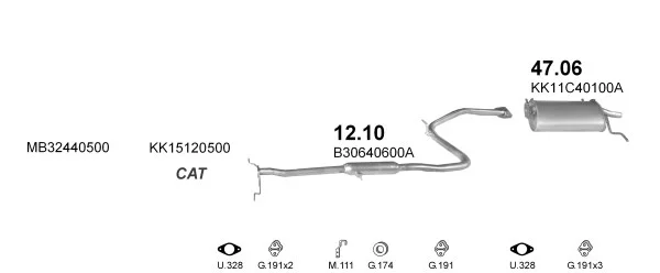 MAZDA 121 I (DA) 1.3 (DA103) - Výfukový systém - kompletní od 4/1989 do 10/1990, 1324 ccm, 40 kW, 55 hp, B3, Šikmá zadní část