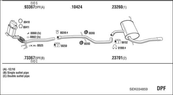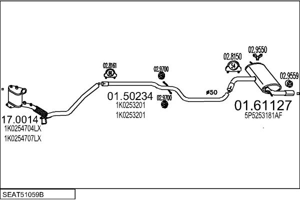 SEAT ALTEA XL (5P5, 5P8) 1.6 TDI - Výfukový systém - kompletní od 11/2010 do 7/2015, 1598 ccm, 66 kW, 90 hp, CAYB, velkoprostorová limuzína
