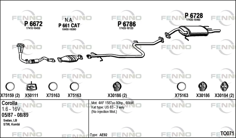 TOYOTA COROLLA Liftback (_E9_) 1.6 (AE92) - Výfukový systém - kompletní od 8/1987 do 4/1992, 1587 ccm, 66 kW, 90 hp, 4A-F, Šikmá zadní část