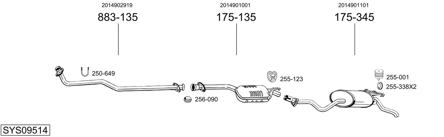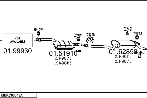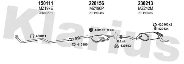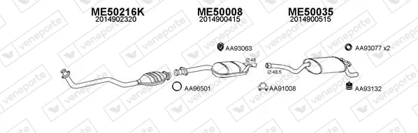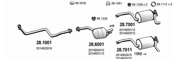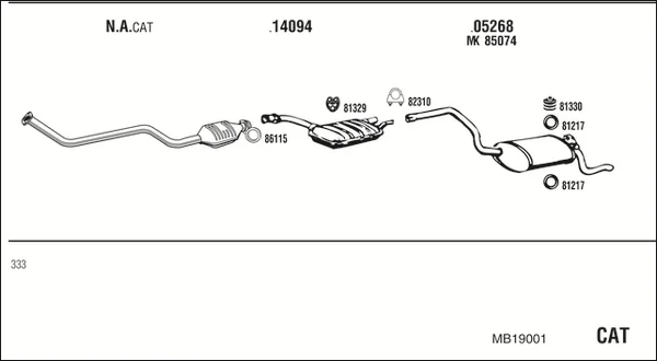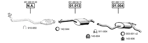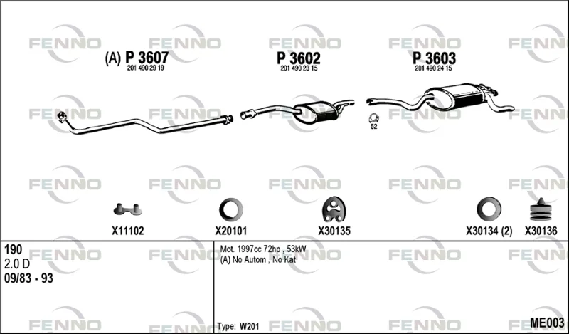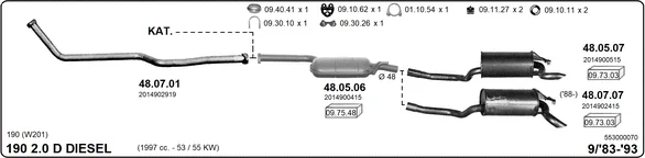 MERCEDES-BENZ 190 (W201) D 2.0 (201.122) - Výfukový systém - kompletní od 8/1989 do 8/1993, 1997 ccm, 55 kW, 75 hp, OM 601.911, limuzína