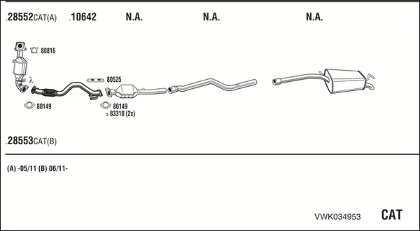 VW CADDY III Skříňová/velkoprostorová limuzína (2KA, 2KH, 2CA, 1.2 TSI - Výfukový systém - kompletní od 9/2010 do 5/2015, 1197 ccm, 63 kW, 86 hp, CBZA, Skříňová/velkoprostorová limuzína