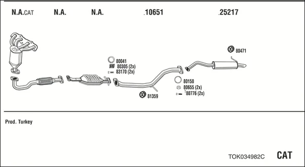 TOYOTA AURIS (_E15_) 1.33 Dual-VVTi (NRE150_, NRE150R) - Výfukový systém - kompletní od 1/2010 do 9/2012, 1329 ccm, 73 kW, 99 hp, 1NR-FE, Šikmá zadní část