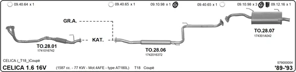 TOYOTA CELICA kupé (_T18_) 1.6 (AT180) - Výfukový systém - kompletní od 9/1989 do 12/1993, 1587 ccm, 77 kW, 105 hp, 4A-FE, kupé