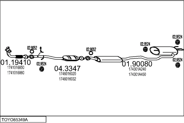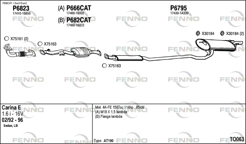 TOYOTA CARINA E VI (_T19_) 1.6 GLI (AT190) - Výfukový systém - kompletní od 4/1992 do 9/1997, 1587 ccm, 79 kW, 107 hp, 4A-FE, Šikmá zadní část